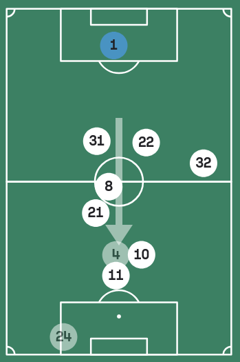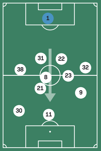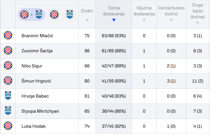 Posjed je bio na strani domaćina s također 58% naspram 42%. S obzirom na to da je Hajduk imao 115 dodavanja više od Osijeka, nije čudno da Mlačić i Šarlija predvode obje ekipe s dodavanjima, od toga Mlačić ima 63/68 točnih dodavanja (93%), a Šarlija 61/69. Slijede ih Sigur, Hrgović, Babec, Mkrtchyan, Hodak i Jelenić.