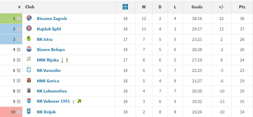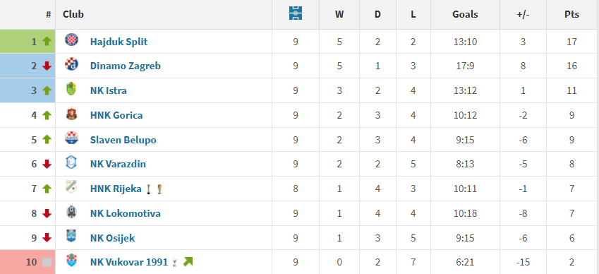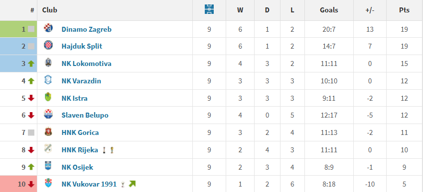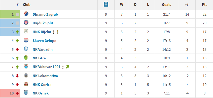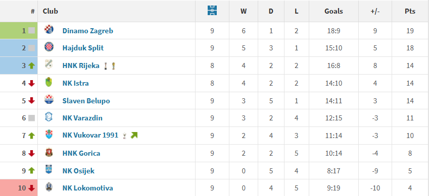 Hajduk je druga najbolja domaća momčad lige te je na Poljudu osvojila više od polovice bodova. Splitska momčad je to ostvarila uz 6 pobjeda, 2 remija i jednim porazom u 9 utakmica.
