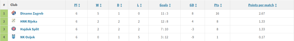 Tablica protiv rivala otkriva, najveći problem Hajduka ove sezone. U odnosu na Dinamo i Rijeku, Hajduk je najlošija momčad od navedenih te u međusobnim omjerima nemaju nijednu pobjedu. Hajduk je tek uspio dvaput savladati Osijek koji se ove sezone bori za opstanak.