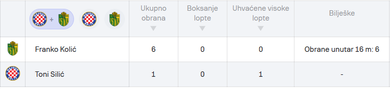 Toni Silić nije bio pretjerano zaposlen unatoč 2 gola i jednom golu izbijenom s crte. Imao je samo jednu obranu i jednu visoko uhvaćenu loptu. S druge strane, Kolić je imao jako dobru predstavu sa 6 obrana, svih 6 unutar 16 metara, te je među istaknutijim pojedincima na utakmici.