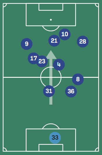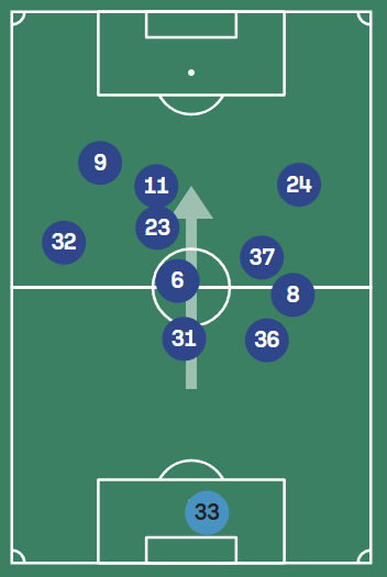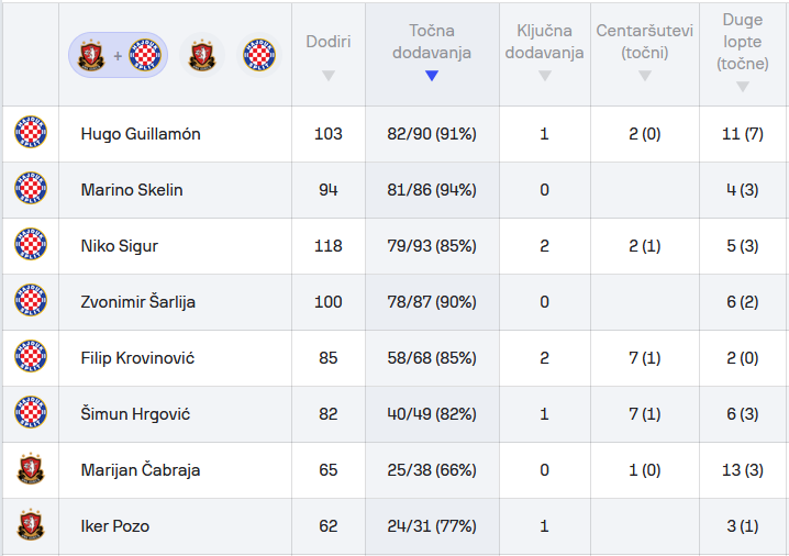 Hajduk je dominirao u posjedu i s završio utakmicu s 74% naprema 26%. Šestorica igrača Hajduka bili su igrači s najviše dodavanja, i to redom: Guillamon, Skelin, Sigur, Šarlija, Krovinović i Hrgović. Čabraja i Pozo su bili igrači Gorice s najviše dodavanja.