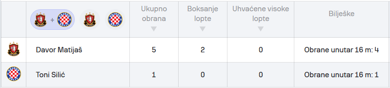 Silića je obrana dovela u par neugodnih situacija, ali je na kraju samo zabilježio jednu obranu, a nakon gola koji mu je bio neobranjiv, nije imao pretjerano puno posla. S druge strane, Goričin Matijaš je imao 5 obrana od kojih su 4 bile unutar 16 m, te dvije boksane lopte. Bio je među najboljim pojedincima na terenu.