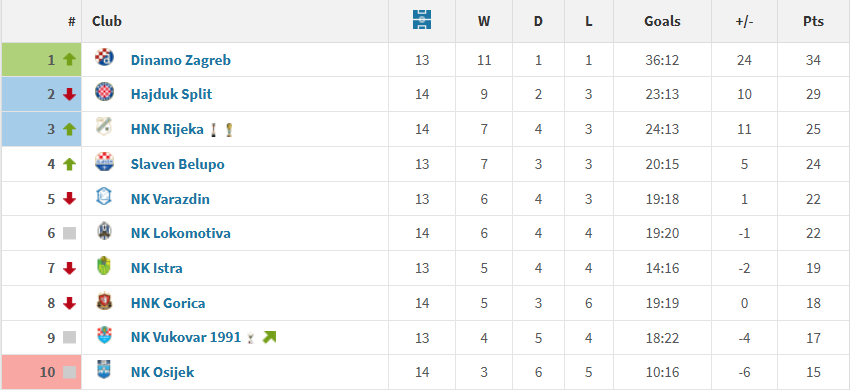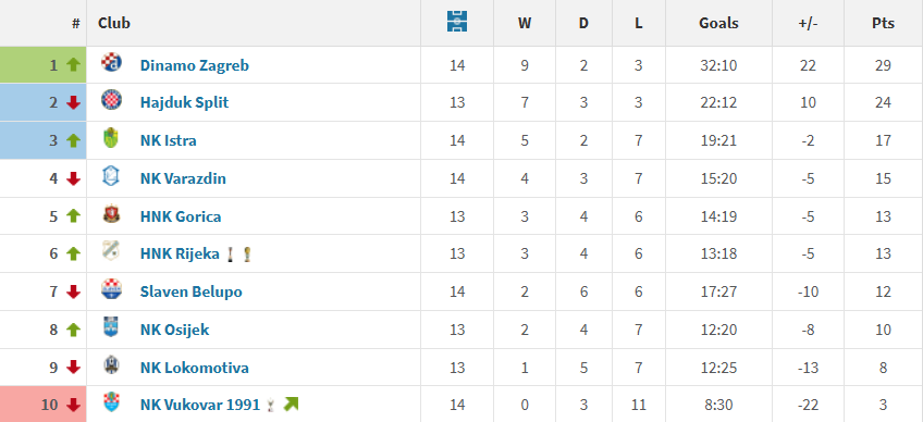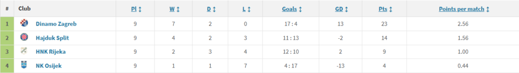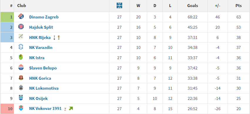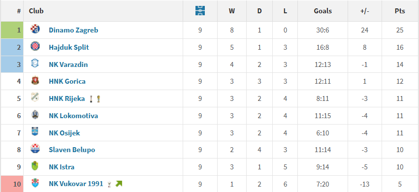 Hajduk je druga najbolja domaća momčad lige te je na Poljudu osvojila više od polovice svojih bodova. Splitsk amomčad je to ostvarila uz 9 pobjeda, 2 remija i 3 poraza u 14 susreta.