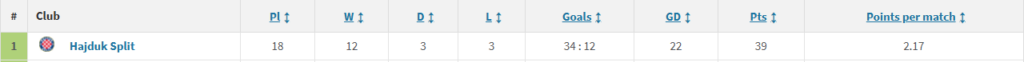 Trenutačno je Hajduk nakon 27 kola na 53 boda, što znači da osvaja u prosjeku 1.96 boda po utakmici. Ako bi nastavio identičnim tempom, završio bi sa 71 bodom na kraju sezone.